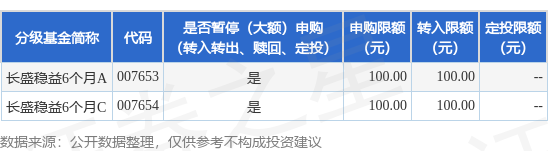 本站消息,11月6日长盛基金管理有限公司发布《长盛稳益6个月定期开放债券型证券投资基金暂停大额申购、大额转换转入业务的公告》。公告中提示,为充分保护基金份额持有人利益,适度控制基金规模正规合法的股票配资平台,保障基金平稳运作.,自2025年11月6日起长盛稳益6个月定期开放债券型证券投资基金暂停大额申购、大额转换转入业务,申购、转换转入上限金额为0.01万元,下属分级基金调整明细如下: