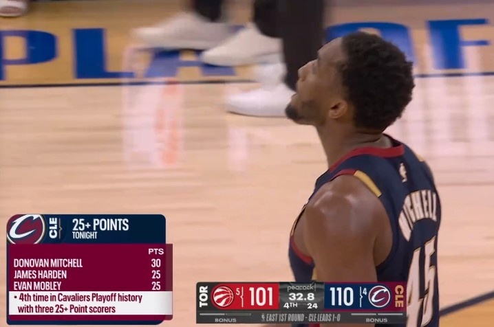 券商配资服务官网 骑士季后赛队史第4次单场三人得分25+!米切尔30分最高